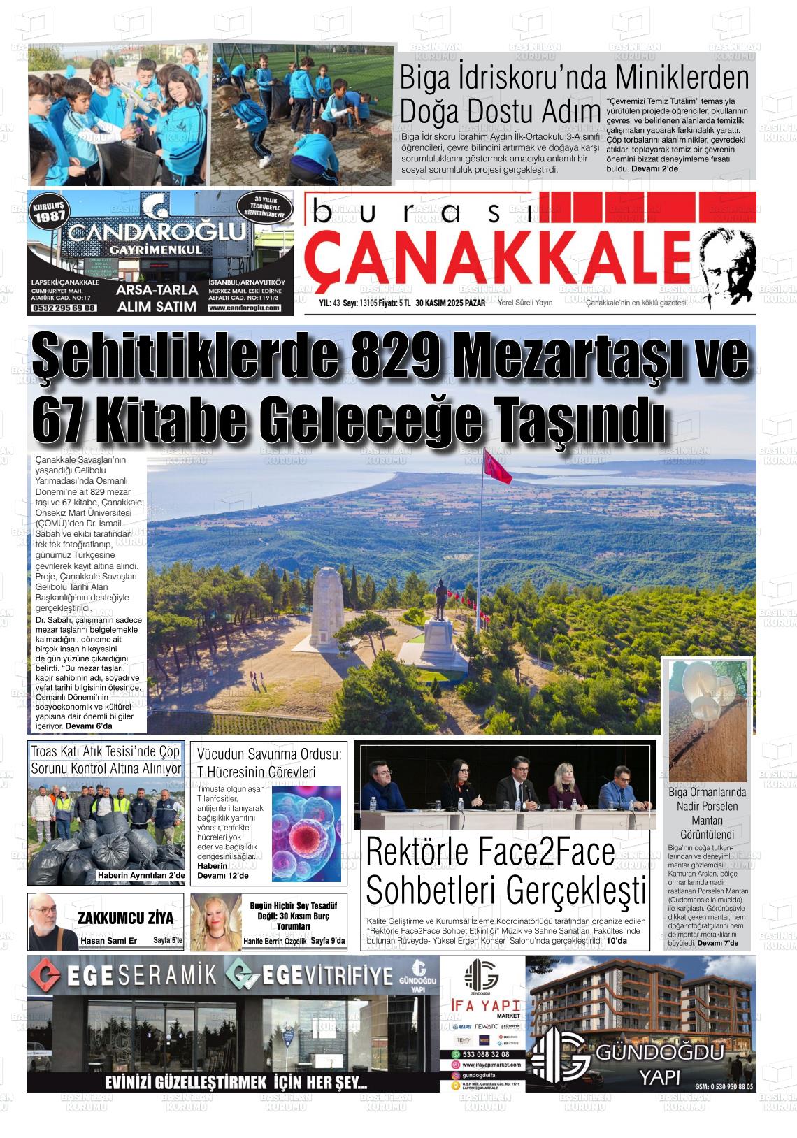 Çanakkale Yerel Gazeteleri 30 Kasım 2025, Pazar Günü Manşeti