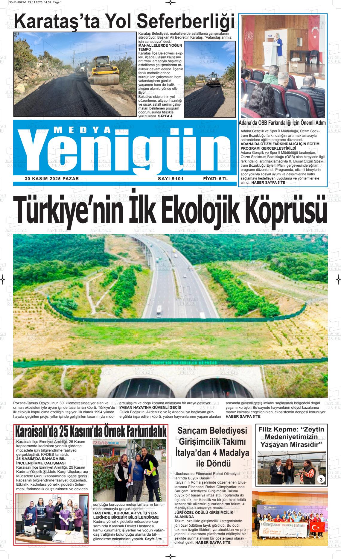 Hakkârİ Yerel Gazeteleri 30 Kasım 2025, Pazar Günü Manşeti