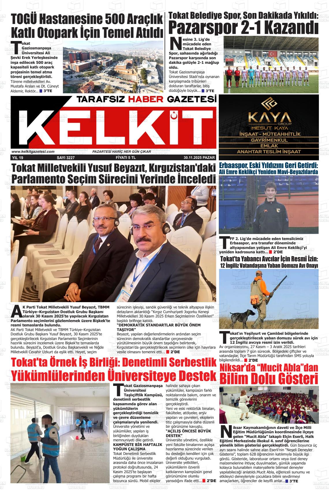 Tokat Yerel Gazeteleri 30 Kasım 2025, Pazar Günü Manşeti